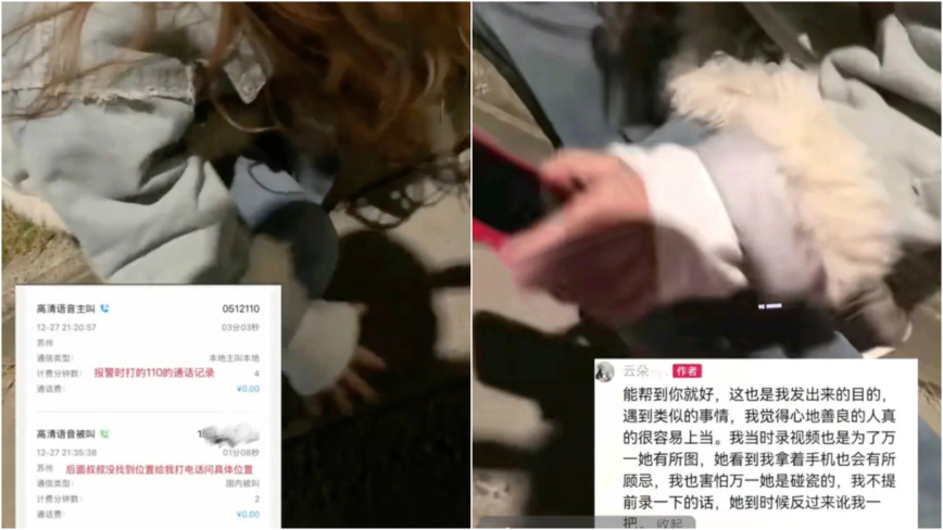 1月21日,据大陆媒体报导,发布视频的陈女士表示,事情发生在12月27日晚上 ,当时她问女孩子要不要帮她打车或者报警,女孩都拒绝了,陈女士还出示了她当时报警留下的通话记录。