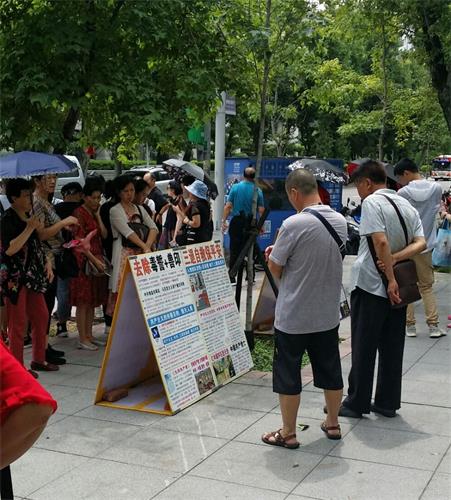 有位资深导游主动关心学员:“你们法轮功,不管天气如何或放不放假都在这里,就为了给大陆游客资料讯息,真让人感到温暖!所以我都跟团员说:‘天下事,哪能不知道?法轮功发这些报纸资料,可能就有你该知道的国际大事,而且都是免费的,有什么不能看的呢?’”